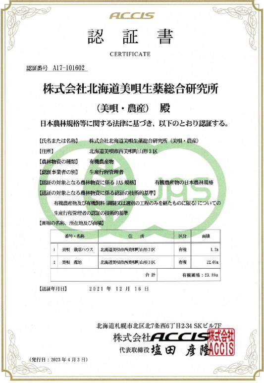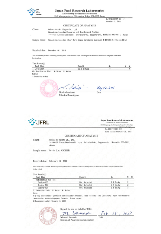 Hokkaido Reishi memenuhi standar kualitas global, termasuk:
